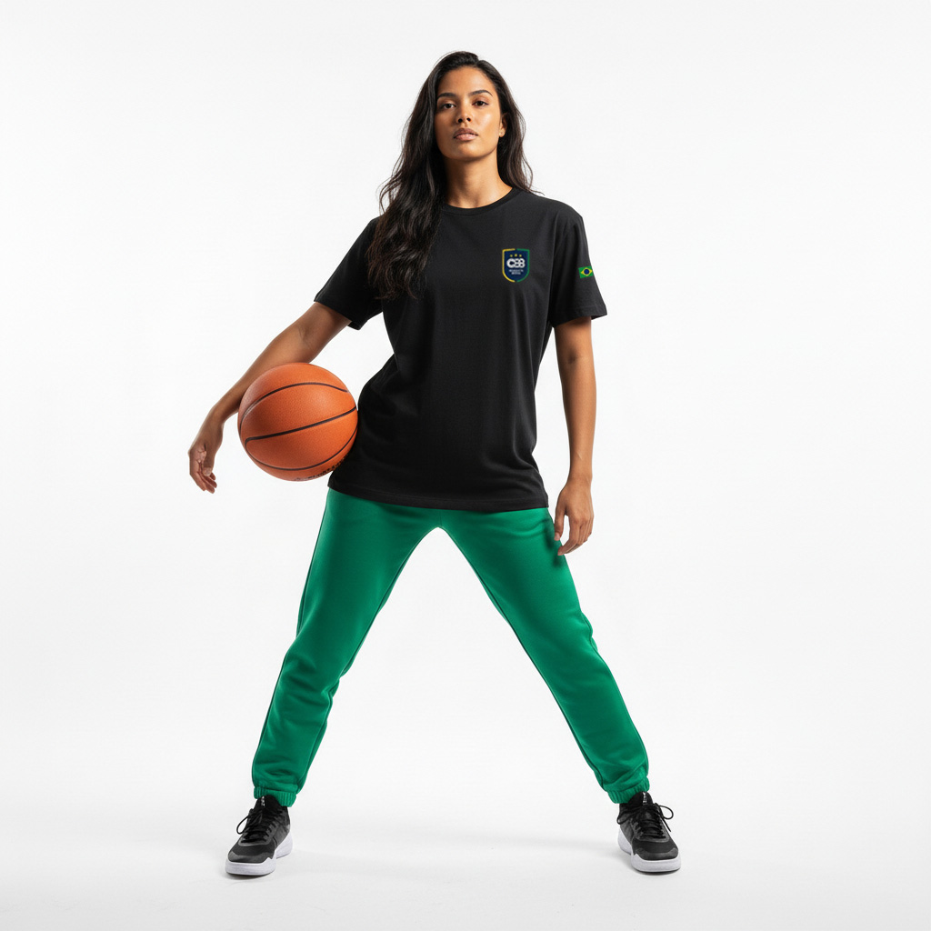 A camiseta preta CBB traduz a essência do basquete brasileiro em uma peça versátil e sofisticada. Produzida em malha 100% algodão, ela proporciona uma experiência de uso superior: maciez extrema em contato com a pele e a leveza necessária para a sua rotina.