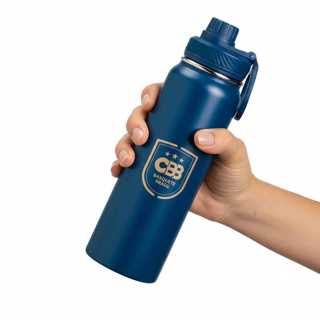 Hidrate-se, assista e grave com liberdade. Esta Garrafa Térmica de 850ml mantém sua bebida na temperatura ideal e possui uma alça magnética revolucionária que funciona como tripé para o seu smartphone. A companhia perfeita para treinos, viagens e dia a dia.